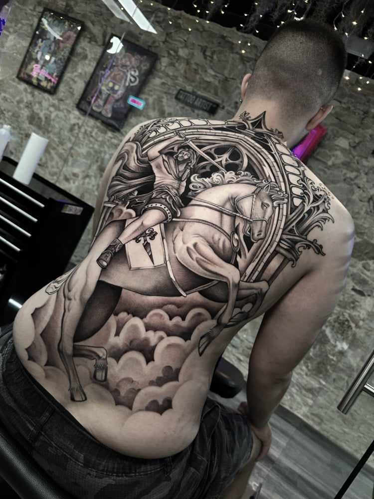 Un proyecto de autor diseñado para transformar tu espalda por completo. Este servicio está enfocado en piezas de gran escala donde mi técnica y visión artística logran su máximo potencial.