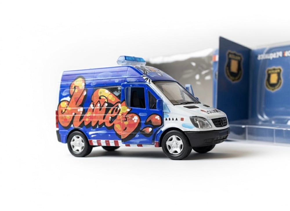 Gente! Mirad qué joyita os traigo para la web. Esto es una furgoneta de la Policía Nacional, sí, pero con una vuelta de tuerca. La he cogido y la he convertido en un lienzo de protesta puro, 100% calle.